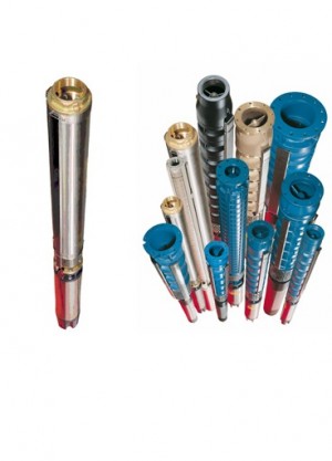Submersible multistage borehole pumps, with radial or semi-axial impellers, diffusers in noryl, ceramic-rubber bearings self lubricated by pumped liquid, external shell and pump shaft in stainless steel. Discharge casing incorporates a non return valve. Motor couplings according to Nema standard.
